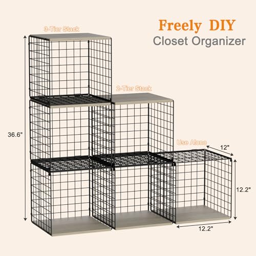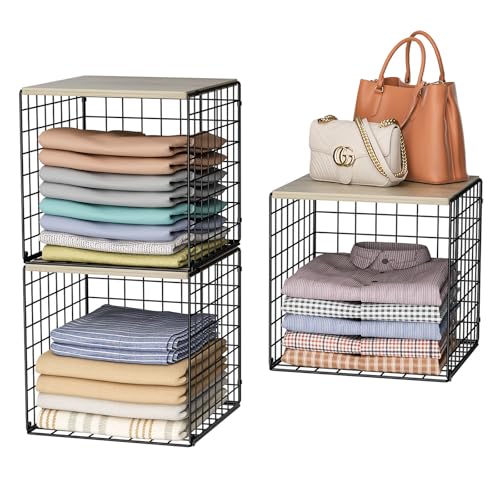 About this item ใ๐ฉ๐ฒ๐ฟ๐๐ฎ๐๐ถ๐น๐ฒ ๐ฆ๐๐ผ๐ฟ๐ฎ๐ด๐ฒ ๐ฆ๐ผ๐น๐๐๐ถ๐ผ๐ปใ: Perfect for organizing clothes, shoes, bags, toys, snacks, documents, and books. Great for entryways, walk-in closets, wardrobes, or even shelves, helping you keep your space clean and clutter-free. ใ๐ฆ๐๐ฎ๐ฐ๐ธ๐ฎ๐ฏ๐น๐ฒ & ๐ฆ๐ฝ๐ฎ๐ฐ๐ฒ-๐ฆ๐ฎ๐๐ถ๐ป๐ดใ: These cube organizer shelf let you stack multiple units or use them individually to suit your needs, and not sliding. Use the cube organizer bottom for storage and the sturdy wooden top for bags, hats, or decor, giving you double the storage space in a neat, compact setup. ใ๐ฆ๐๐๐น๐ถ๐๐ต & ๐๐๐ฟ๐ฎ๐ฏ๐น๐ฒใ: The closet organizers and storage designed with a light colored ivory white wooden top and black metal wire mesh frame bottom, these storage baskets are breathable, odor-free, and easy to clean. Unlike plastic or fabric closet organizer that warp or tear over time, this iron-and-wood combination offers a sturdy and modern design that pairs perfectly with your furniture. ใ๐ฃ๐ฒ๐ฟ๐ณ๐ฒ๐ฐ๐ ๐ฆ๐ถ๐๐ฒใ: Measuring sigle size:12.20in*12.00in x 12.20in (L x W x H), 3 pack stackable size: 12.20in*12.00in x 36.6in (L x W x H), the closet storage organizer fits most clothing sizes, including coats, pants, and jeans. The ideal depth ensures they sit neatly in your closet without sticking out. With winter here, you can use closet organizers and storage system to store summer jackets, T-shirts, pants, and skirts, while organizing sweaters, hats, and other winter essentials in separate closet shelves organizer. The mesh design makes storage bin easy to see whatโs inside, helping you take back control of your closet and keep your living space organized and tidy. ใ๐๐ฎ๐๐ ๐๐ผ ๐๐๐๐ฒ๐บ๐ฏ๐น๐ฒใ: The simple structure makes assembly and disassembly a breeze. Just follow the instructions and use the included screws to put baskets for closet organization together. Ensure all connectors are securely locked in place, and youโll have a sturdy, rectangular clothing organizer ready to use. ใ๐๐๐๐๐ผ๐บ๐ฒ๐ฟ ๐ฆ๐๐ฝ๐ฝ๐ผ๐ฟ๐ใ: Featuring a classic ivory-white wooden top and black metal mesh design, this clothes storage organizer adds a modern, minimalist touch to your space and pairs beautifully with other furniture. If you have any questions about your closet organizer and storage shelves, feel free to contact us .We will replace or return any defective products. ย See more product details