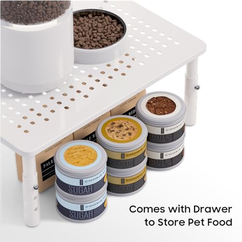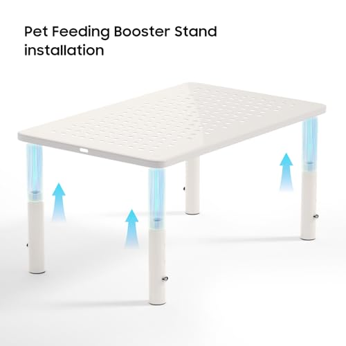 About this item 【Adjustable Stand Height】If your pet grows older, there’s no need to worry. Our automatic feeder stand for cats/dogs features three height settings (4.13in, 4.92in, 5.71in), designed to accommodate cats and small dogs of different sizes. 【Compatible with Most Automatic Feeders】Our elevated feeder stand works with most 4L-6L automatic feeders on the market, featuring a surface measuring 9.25in (W) x 14.57in (L). 【Secure & Non-Slip】The feeder stand remains stable against pet interactions. Each base is equipped with non-slip pads to prevent bowl movement and protect flooring surfaces. 【Elevated Feeding for Comfort & Cleanliness】 The raised height and angled holder position pets’ dishes at a level designed for ease of access during meals. This elevated design helps keep food and water cleaner by minimizing contact with floor debris and insects, while also preventing pets from stepping into their bowls. 【Integrated Storage Base】The feeder’s base provides ample storage space for cat food cans, featuring an easy-to-clean design that prevents debris buildup. The open-frame construction ensures quick maintenance and hygienic food storage. See more product details